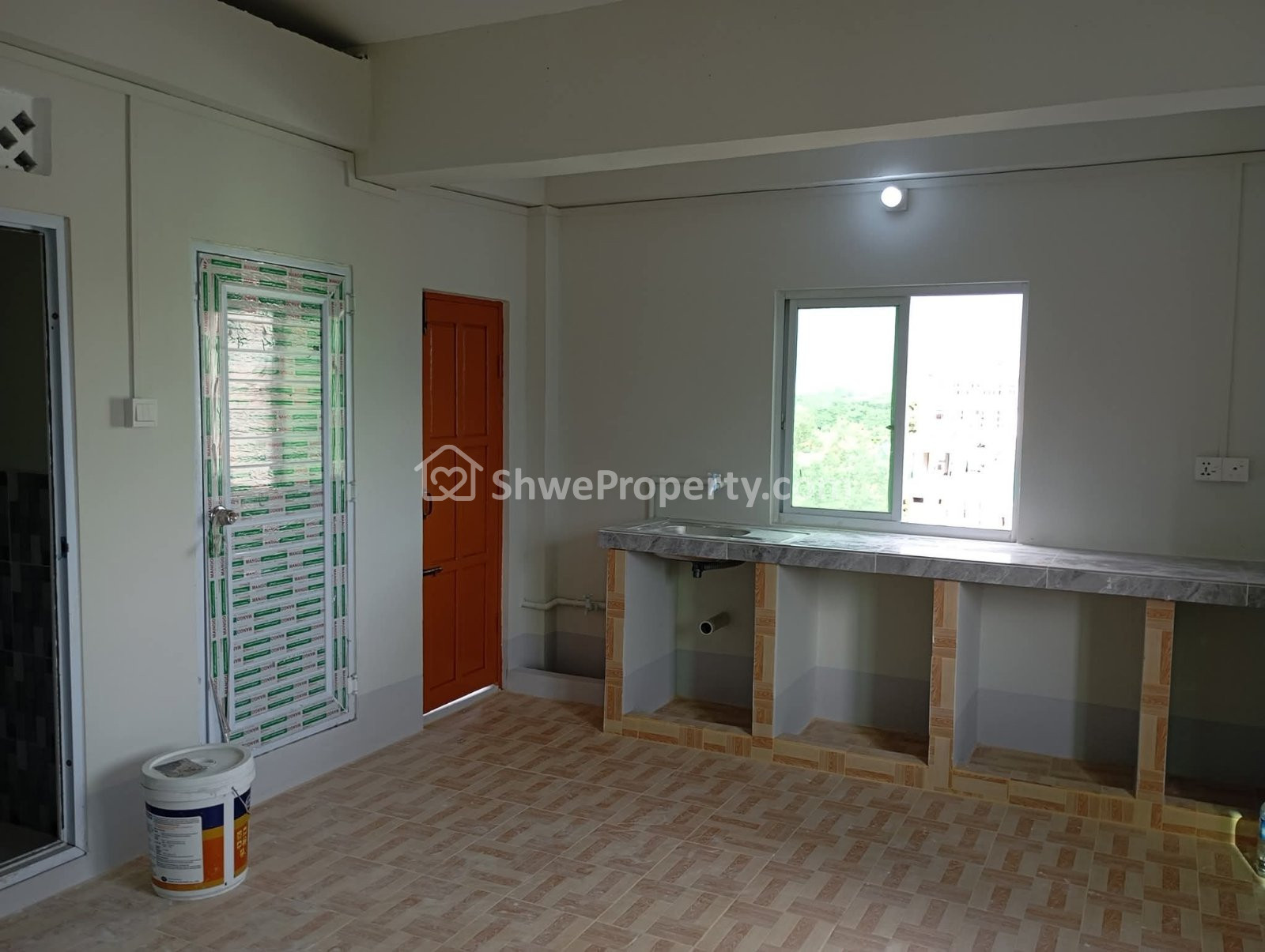 မိးဖိုခုံ /အုတ်ကန်/ရေတိုင်ကီ/ဘေဆင်/မိးဖိုဆောင်ကြမ်းခင်းအပြည့်ကြွေပြားကပ် /ဆေးအသစ်/ပြင်ဆင်ပြီး/BCC /မီတာ ကျပြီး