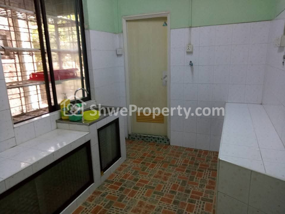 နောက်ဖေးမီးဖိုချောင်မှာ အိမ်သာရေချိုးခန်းတစ်ခု ပါပါတယ်