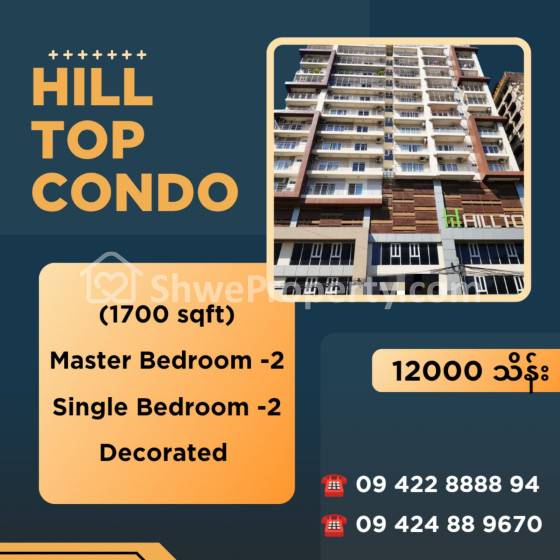 အလုံမြို့နယ်ရဲ့ Luxury Condo တွေထဲက လူကြိုက်အများဆုံးနဲ့ လူမေးအများဆုံး ကွန်ဒို တစ်ခုဖြစ်တဲ့ နှင်းဆီကုန်း လမ်းမကြီးပေါ်မှ Hill Top Condo အရောင်းခန်းလေးဖြင့် မိတ်ဆက်ပေးပါရစေ