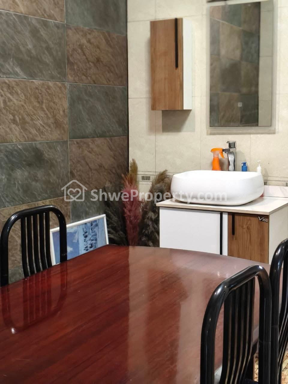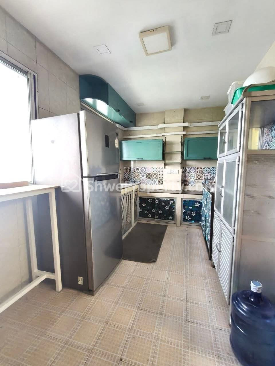 Aircon x2 (Mitsubishi) ,sofa set x1, tv & stand, big wardrobe x4, dining table set x1 , အလှပြင်မှန်တင်ခုံx1 , washing machine x1 , fridge x1, kitchen cabinet x1 ..