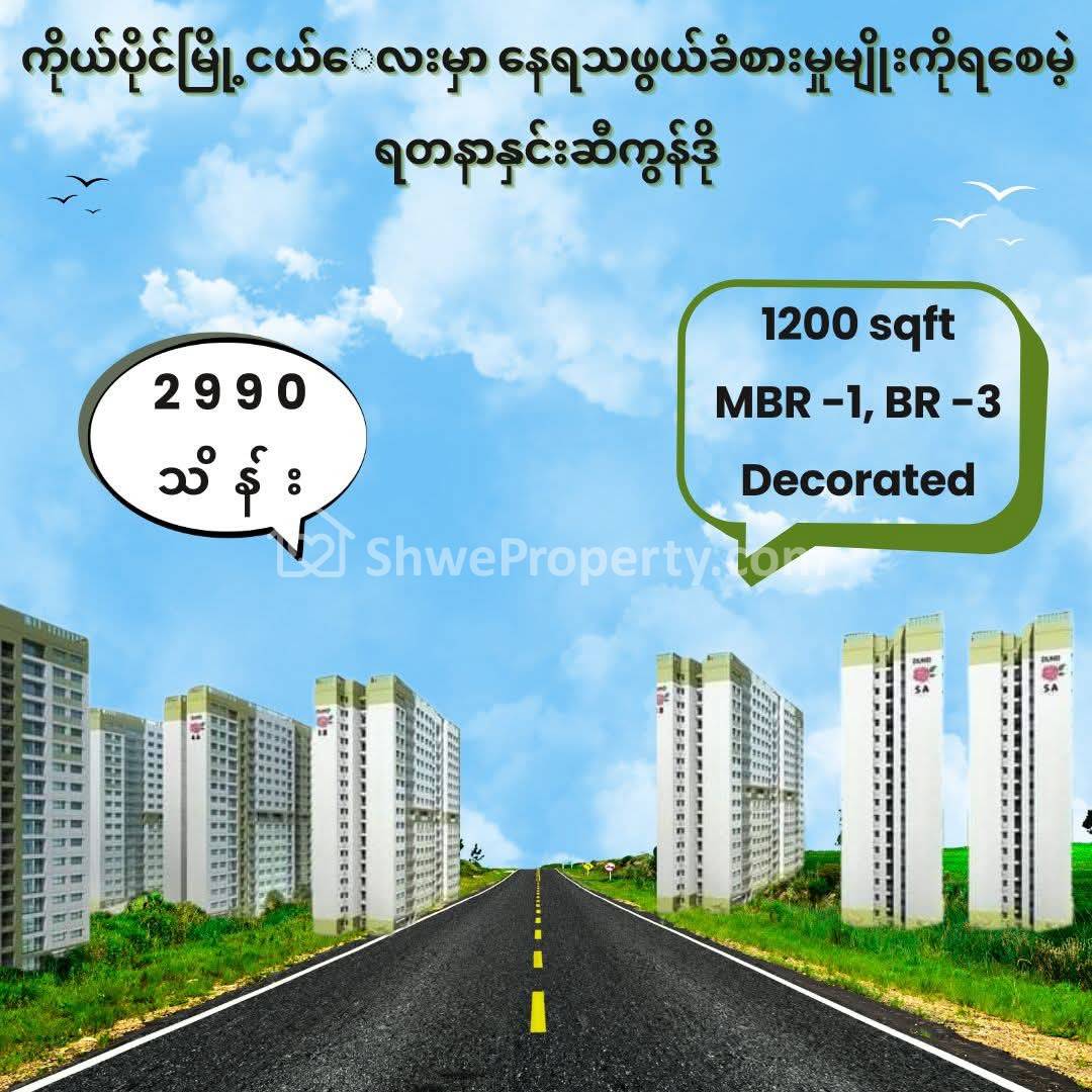 အိမ်ခြံမြေ အမည် : ဒဂုံဆိပ်ကမ်းမြို့နယ် ရတနာလမ်းမကြီးပေါ်မှာတည်ရှိသည့် ရတနာနှင်းဆီကွန်ဒိုအိမ်ရာဝန်းထဲမှ ပြင်ဆင်ပြီး အခန်းရောင်းမည်