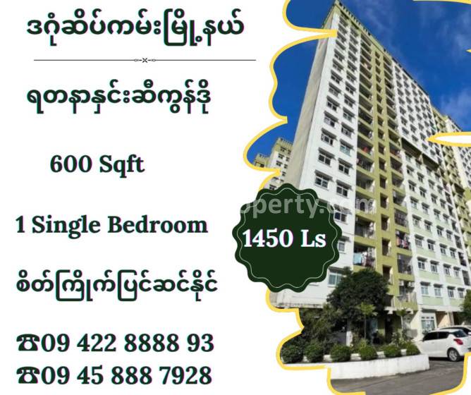 အိပ်ခန်း ၁ ခန်း ရေချိုးခန်း ၁ ခန်း ပါ ရန်ကုန်တိုင်းဒေသကြီး ဒဂုံမြို့သစ်ဆိပ်ကမ်း မြို့နယ်ရှိ ရောင်းရန်ရှိသော ကွန်ဒို