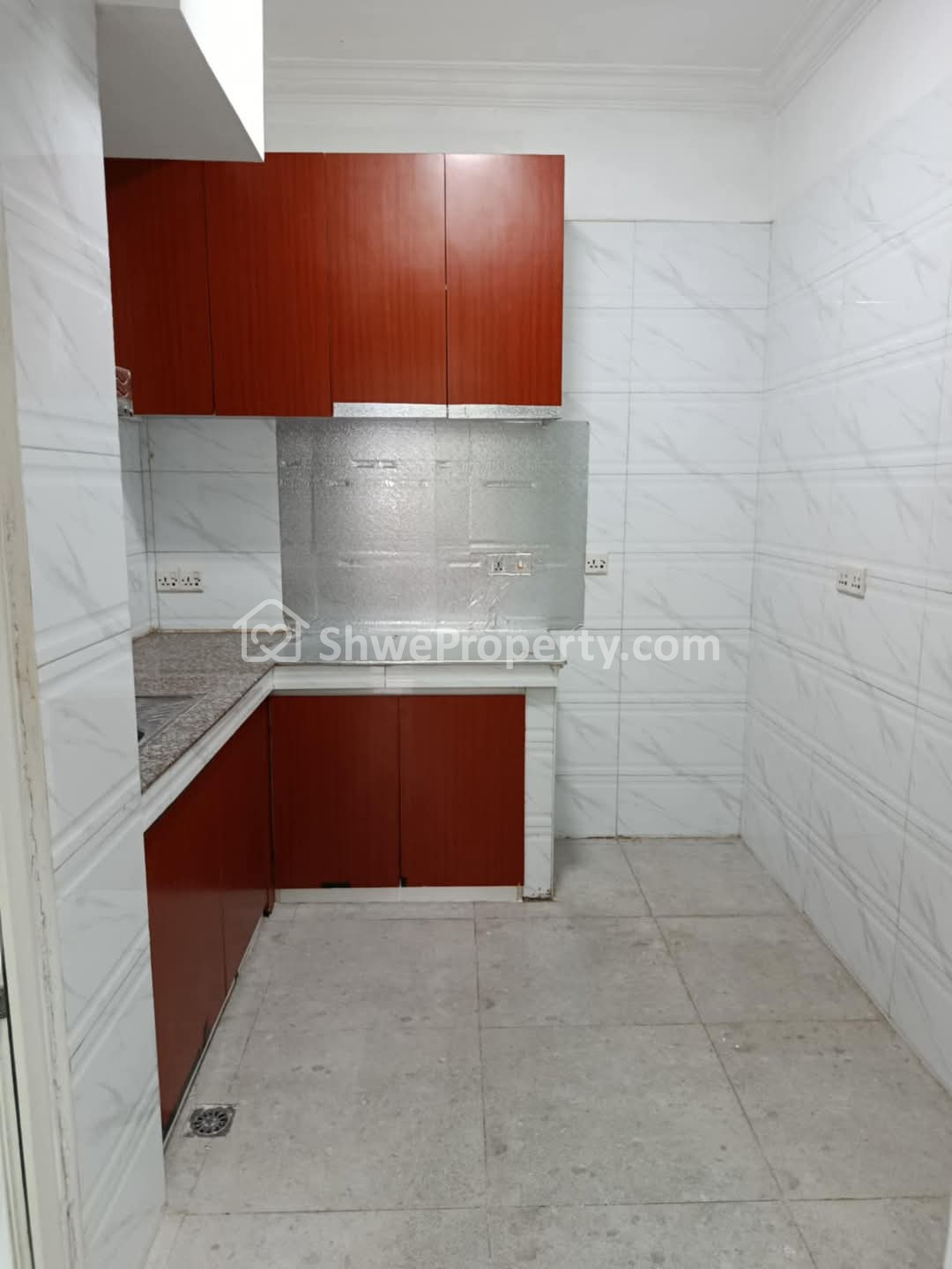 👉မီးဖိုချောင် (နံရံကပ်ဗီဒိုပါ၊ကြမ်းပြင်နံရံကြွေပြားအပြည့်ကပ်ထား)