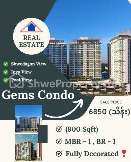 အိမ်ခြံမြေ အမည် : လှိုင်မြို့နယ်ရှိ ၊ သွားရလာရ အဆင်ပြေလွယ်ကူပြီး အချက်အချာကျတဲ့ အင်းစိန်လမ်းမကြီးအနီးတွင်တည်ဆောက်ထားသော Gems Condo မှ အလွှာမြင့် View ကောင်းတဲ့အခန်းရောင်းမည်