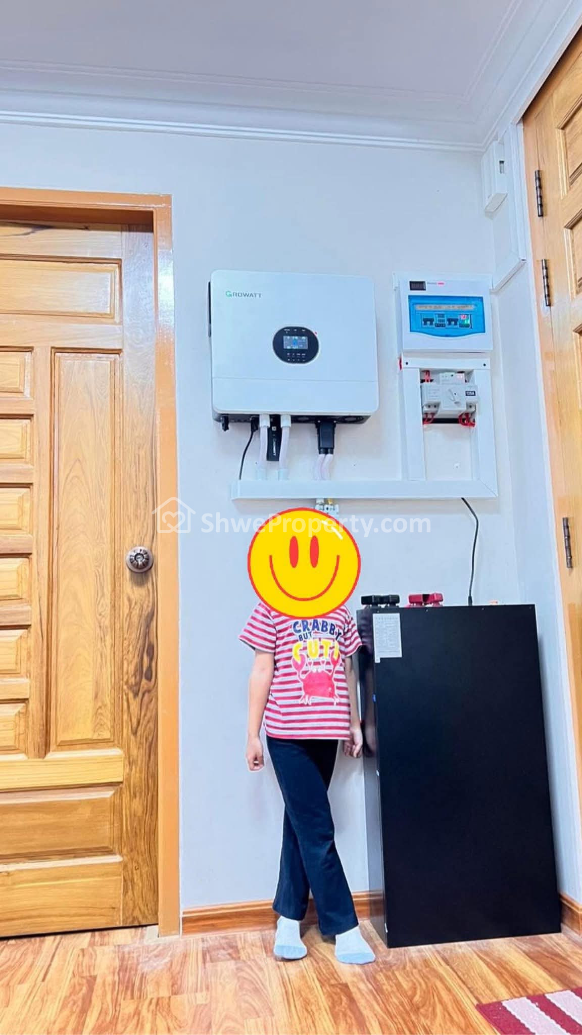 Solar Inverter တပ်ထားလို့ မီး(၂၄) နာရီရပါမယ်။ Roof top မှာ Solar လေးချပ်တပ်ထားပါတယ်။