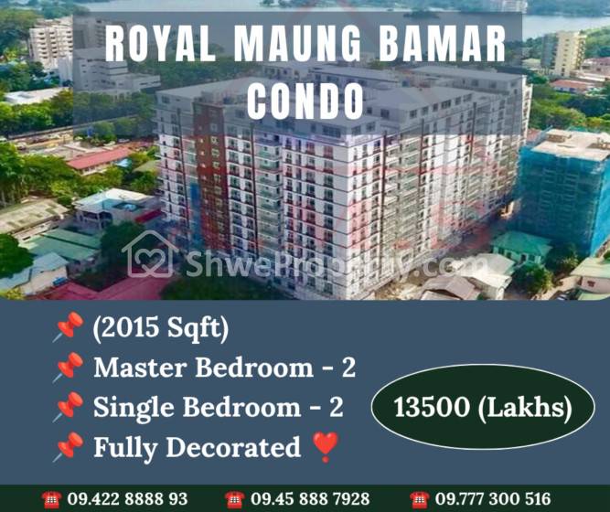အိမ်ခြံမြေ အမည် : လှိုင်မြို့နယ်၏လူကြိုက်များပြီး အချက်အချာကျသော ၊ ပြည်လမ်းမကြီးအနီးတွင်ခမ်းနားထည်ဝါစွာတည်ဆောက်ထားတဲ့ Royal မောင်ဗမာ Condo မှ ပြင်ဆင်ပြီးအရောင်းခန်း