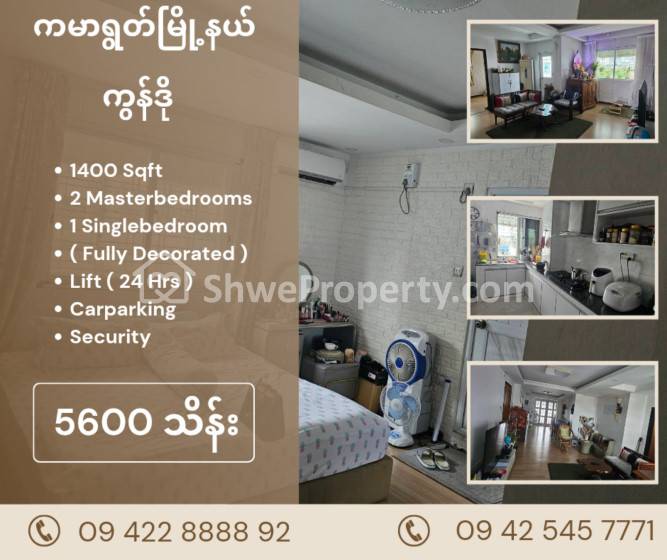 အိပ်ခန်း ၃ ခန်း ရေချိုးခန်း ၃ ခန်း ပါ ရန်ကုန်တိုင်းဒေသကြီး ကမာရွတ် မြို့နယ်ရှိ ရောင်းရန်ရှိသော ကွန်ဒို
