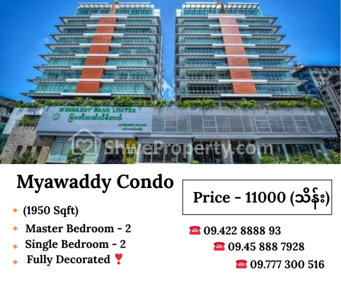 အိမ်ခြံမြေ အမည် : လမ်းမတော်မြို့နယ် ၊ မြဝတီကွန်ဒို ၊(1950 Sqft) , For Sale