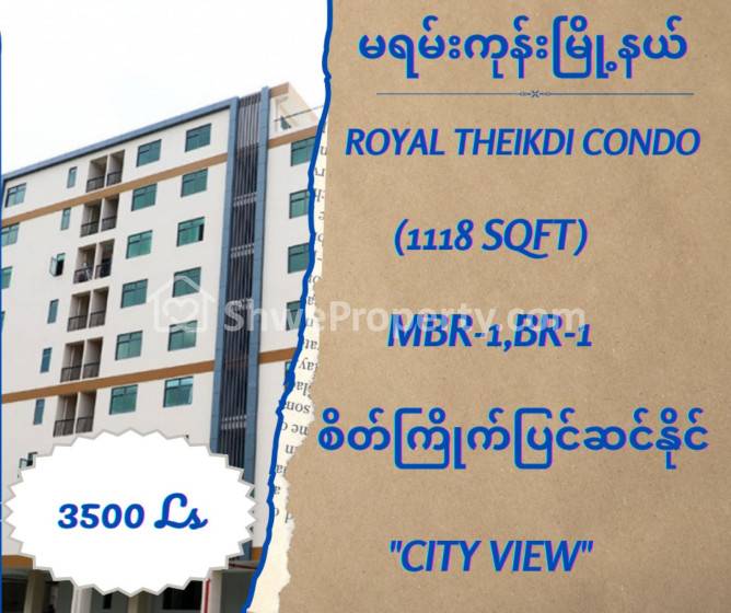 အိမ်ခြံမြေ အမည် : မရမ်းကုန်းမြို့နယ်အတွင်းမှာ လက်ရှိကွန်ဒိုကာလတန်ဖိုးထက် သိန်း ၁၀၀၀ ကျော် သက်သာစွာ ဝယ်ယူနိုင်မယ့် Royal Theikdi Condo တွင် Facilitiesအပြည့်အစုံပါဝင်တဲ့အခန်းရောင်းမည်