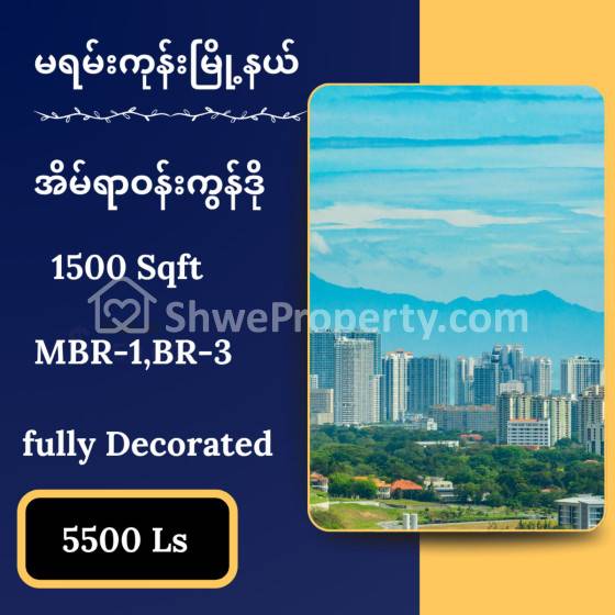 အိပ်ခန်း ၄ ခန်း ရေချိုးခန်း ၂ ခန်း ပါ ရန်ကုန်တိုင်းဒေသကြီး မရမ်းကုန်း မြို့နယ်ရှိ ရောင်းရန်ရှိသော ကွန်ဒို