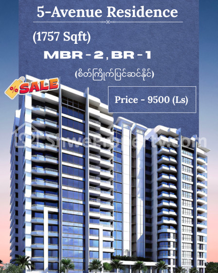 အိမ်ခြံမြေ အမည် : မရမ်းကုန်းမြို့နယ် ၊ 5-Avenue Residence , (1757 Sqft) , For Sale