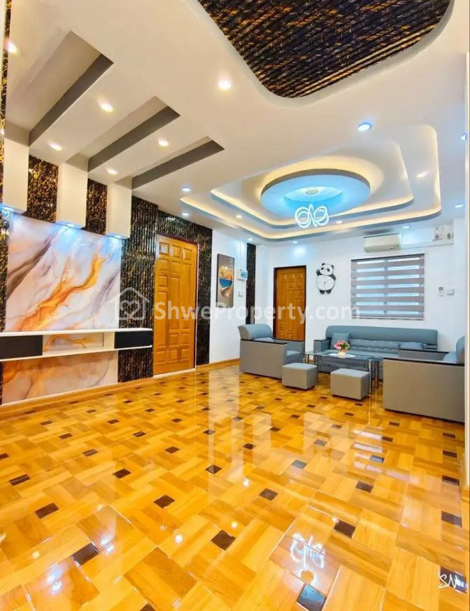 Master Bedroom(1)/Single Bedroom1 /Aircon 1လုံးပါ /ဆိုဖာတစ်စုံ/ ပန်ချီကား/ TV စင်/100%အပြောင် ကိုရီးယားပါကေး