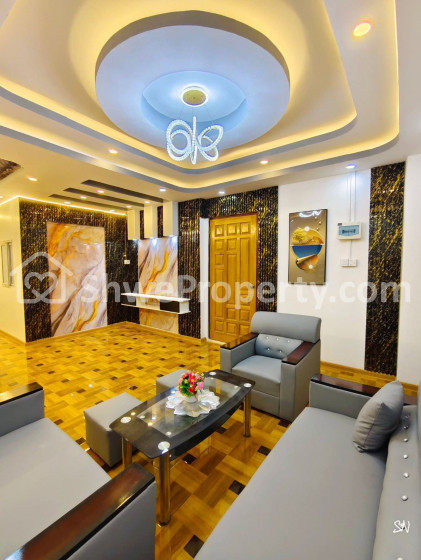 Master Bedroom(1)/Single Bedroom1 /Aircon 1လုံးပါ /ဆိုဖာတစ်စုံ/ ပန်ချီကား/ TV စင်/100%အပြောင် ကိုရီးယားပါကေး