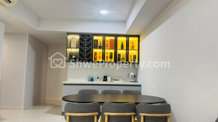 ✅...Fully Decorated ကိုမှ Shoe Cabinet, Living Room နဲ့ Master Bed Room မှာ TV Console တပ်ဆင်ပြီး၊ Dry Kitchen, Liquor Shelf အပါအဝင် အိပ်ခန်း (၂) ခန်းလုံးအား ကုတင် ၊ wardrobe အဆင့်မြင့်တပ်ဆင်ပြီးဖြစ်ပါတယ်။