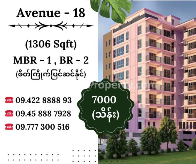 အိမ်ခြံမြေ အမည် : ကမ္ဘာအေးဘုရားအနီး ၊ အင်းယားကန်အနီးမှာရှိတဲ့ အပြင် ၊ နေချင်စရာ Facilities စုံလင်ပြီး နေရာကောင်း Avenue 18 Residence မှ ဈေးနှုန်းသင့် အခန်းရောင်းမည်