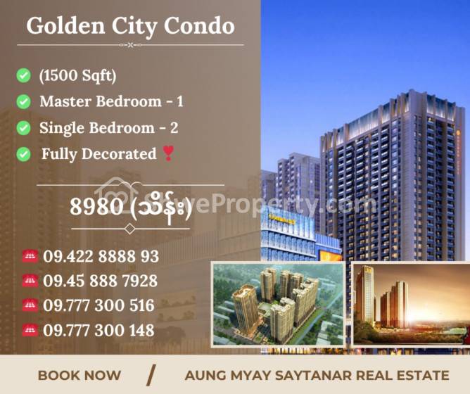 အိမ်ခြံမြေ အမည် : Location , Layout , Maintenance, Facility , Security ဘာမှ ပြောစရာ မလိုအောင် ပြည့်စုံတဲ့ Golden City Luxury Condo ရှိ အခန်းရောင်းမည်