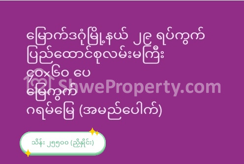 ရန်ကုန်တိုင်းဒေသကြီး ဒဂုံမြို့သစ်မြောက်ပိုင်း ရောင်းရန်ရှိသော မြေကွက် / ခြံ
