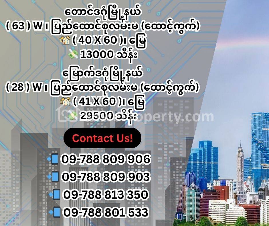 ရန်ကုန်တိုင်းဒေသကြီး ဒဂုံမြို့သစ်မြောက်ပိုင်း ရောင်းရန်ရှိသော မြေကွက် / ခြံ