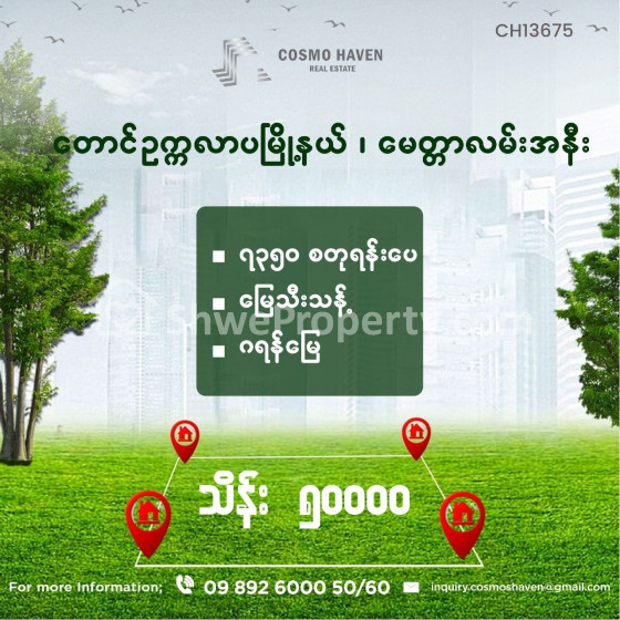 🌲တောင်ဥက္ကလာပမြို့နယ်ထဲမှာ မြေကွက်ကျယ်ရှာနေတဲ့လူကြီးမင်းများအတွက် တောင်ဥက္ကလာပမြို့နယ်ရဲ့ လမ်းမကြီးဖြစ်တဲ့ သံသုမာလမ်းမကြီးနှင့် မေတ္တာလမ်းအနီးတွင်တည်ရှိပြီး မြင်သာ VIP ထဲကမြေကွက်ကျယ်လေးထဲမှာ လူကြီးမင်းတို့ စိတ်တိုင်းကျဒီဇိုင်းဖြင့်အိမ်ပဲဆောက်နေမလား | အထပ်မြင့်ဆောက်ပြီးပြန်လည်ငှားရမ်းမလား ဒါမှမဟုတ်ရင်းနှီးမြှုပ်နှံထားမလား စတဲ့အစစအရာရာအဆင်ပြေပြီး နှစ်ခါပြန်မရနိုင်တဲ့ဈးနှုန်းလေးနဲ့ရမဲ့ မြေကွက်ကျယ် အရောင်းလေးကို ကျွန်တော်တို့ Cosmo Haven Real Estate မှဖော်ပြပေးလိုက်ပါတယ်ခင်ဗျာ🙏🙏🙏