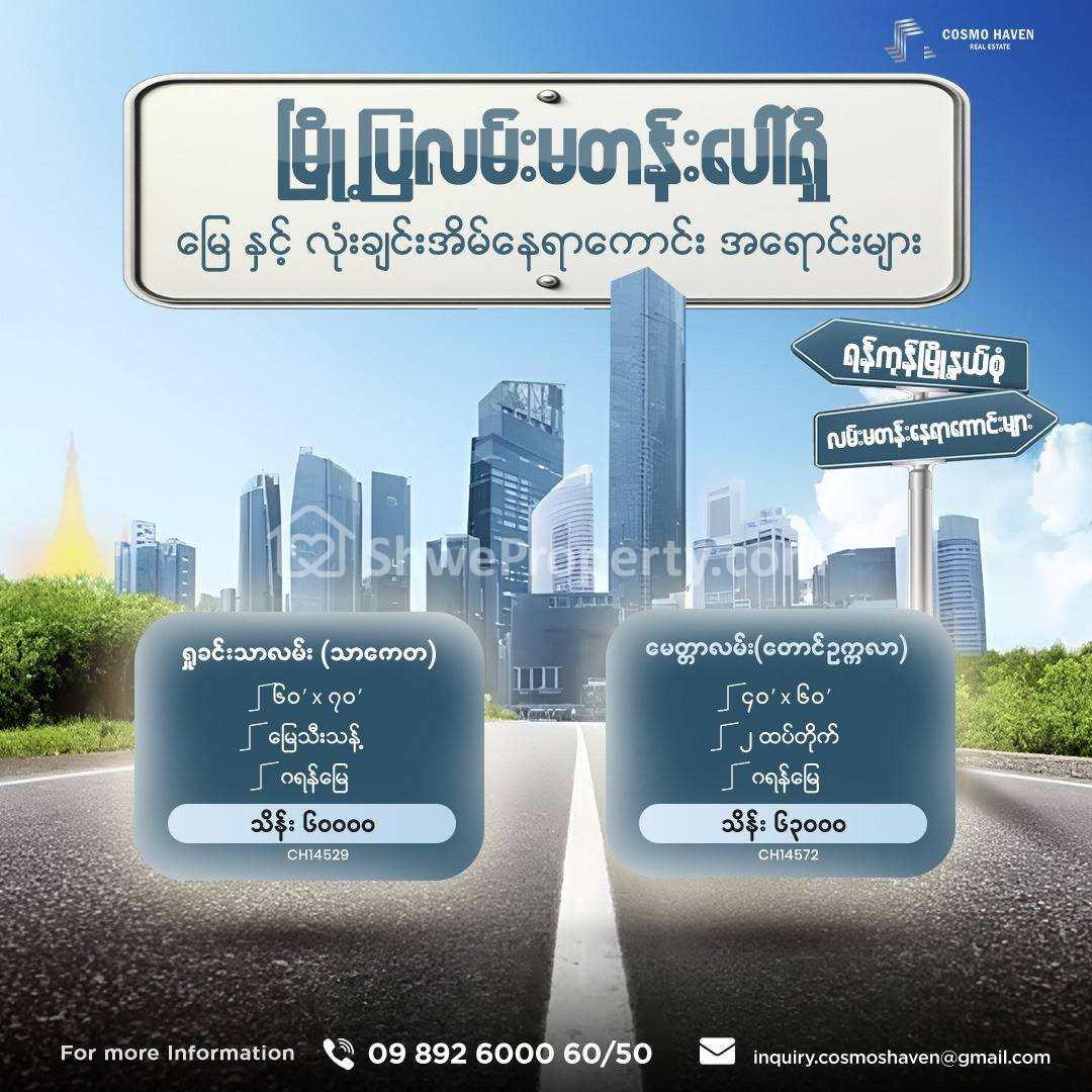 အိမ်ခြံမြေ အမည် : မြို့ပြလမ်းမတန်းပေါ်ရှိမြေနှင့်လုံးချင်းအိမ်နေရာကောင်းအရောင်းများ/Landed House and Land Only For Sales In Yangon/09892600050,09892600060