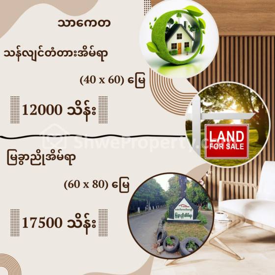 အိမ်ခြံမြေ အမည် : ခေတ်နှင့်အညီ တိုးတက်ပြောင်းလဲနေသော ရန်ကုန်မြို့၏ စက်မှုမြို့တော်ဖြစ်သော သာကေတမြို့နယ်အိမ်ရာဝင်းများရှိ လုံးချင်းမြေကွက် အရောင်းကြော်ငြာများခေတ်နှင့်အညီ တိုးတက်ပြောင်းလဲနေသော ရန်ကုန်မြို့၏ စက်မှုမြို့တော်ဖြစ်သော သာကေတမြို့နယ်အိမ်ရာဝင်းများရှိ လုံးချင်းမြေကွက် အရောင်းကြော်ငြာများ