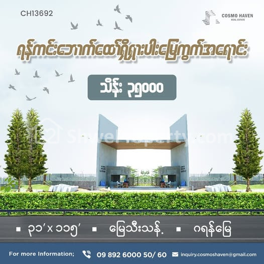 တိတ်ဆိတ်အေးချမ်းသောပတ်ဝန်းကျင်မှာ ကိုယ်ပိုင်စိတ်ကူးပုံဖော်ပီး ဆောက်လုပ်နေထိုင်ဖို့ မြေ သီးသန့်ရှာနေသောလူကြီးမင်းများအတွက် ဝယ်ချင်တိုင်းတောင်ဝယ်လို့မရတဲ့ ရန်ကင်းဘောက်ထော် မှ ရှားပါးမြေကွက်အရောင်းလေးကို ကျွန်မတို့ Cosmo Haven Real Estate မှဖော်ပြပေးလိုက်ပါတယ်ရှင် 📣📣