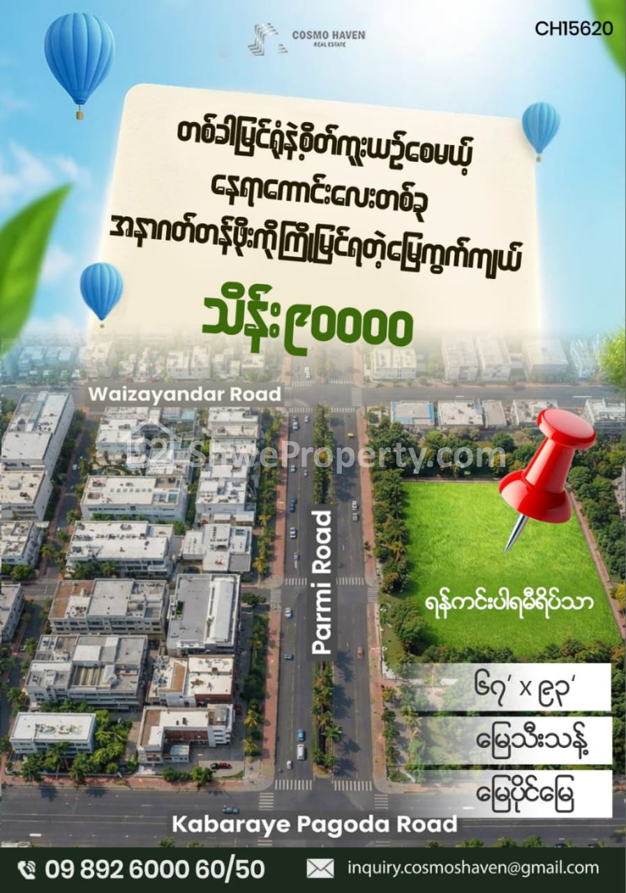 အိမ်ခြံမြေ အမည် : ရန်ကင်းပါရမီရိပ်သာ ရန်ကင်းမြို့နယ် မြေသီးသန့်အရောင်း/Land Only for Sales Yankin Township in Yangon/09892600050,09892600060
