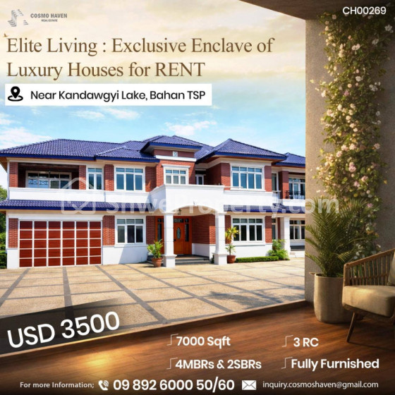 အိမ်ခြံမြေ အမည် : ရန်ကုန်မြို့နယ်ရှိLuxuryဆန်ပြီးလှပသောလုံးချင်းအိမ်အငှားများ/Landed House For Rent In Yangon/09892600050,09892600060
