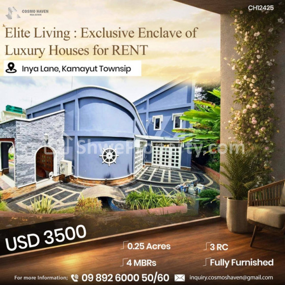 အိမ်ခြံမြေ အမည် : ရန်ကုန်မြို့နယ်ရှိLuxuryဆန်ပြီးလှပသောလုံးချင်းအိမ်အငှားများ/Landed House For Rent In Yangon/09892600050,09892600060