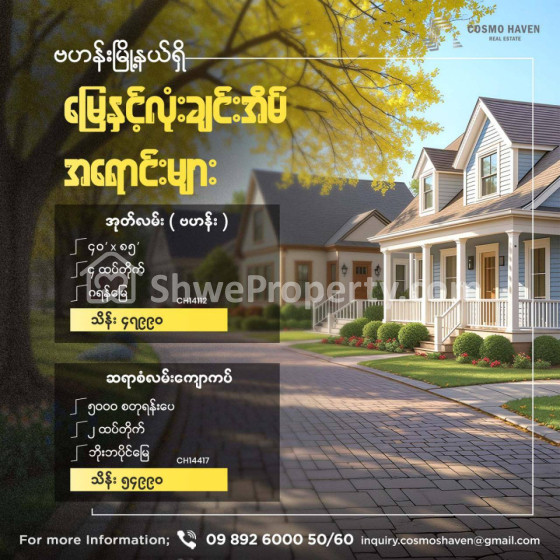 အိမ်ခြံမြေ အမည် : ဗဟန်းမြို့နယ်ရှိမြေနှင့်လုံးချင်းအိမ်အရောင်းများ/Land Only and Landed House For Sales Bahan Township In Yangon/09892600050,09892600060