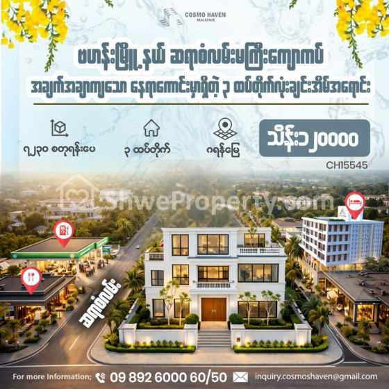 ✨🏙️ ဗဟန်းမြို့နယ် ဆရာစံလမ်းမကြီး ကျောကပ်တွင်တည်ရှိပြီး Coffee Shops, Authentic Clinics, Bars and Restaurants, Jewellery stores များအနီးတွင်တည်ရှိသည့်အပြင် 🌴🏡 Private ဆန်ဆန် လူနေသန့်ပြီး Location အရ အချက်အချာကျသည့် နေရာကောင်း လုံးချင်းအိမ်အရောင်းလေးတစ်ခုကို ကျွန်တော်တို့ Cosmo Haven Estate မှ ရွေးချယ်ဖော်ပြပေးလိုက်ပါတယ်ခင်ဗျာ ✨💁