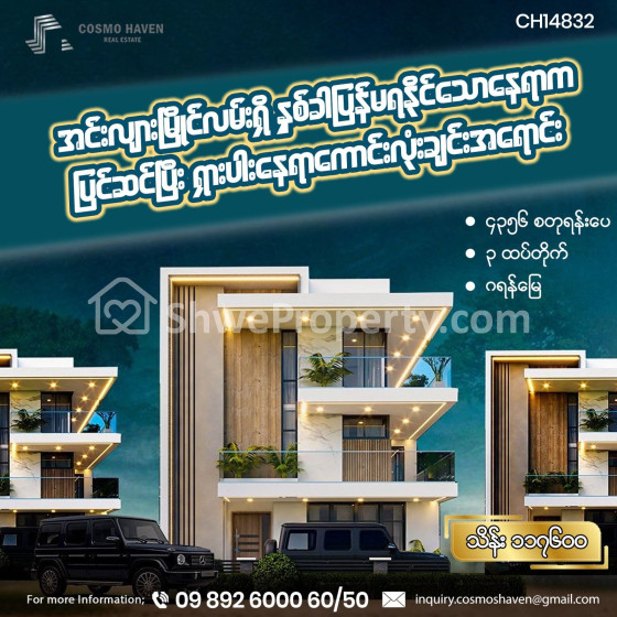 🛎 မိသားစုနဲ့အတူတူနေထိုင်ဖို့လဲ လုံခြုံအေးချမ်းတိတ်ဆိတ် နေလို့ကောင်းတဲ့နေရာလေး 🎗 ဖြစ်တာကြောင့် နှစ်ဦးမှာ တန်ဖိုးရှိတဲ့နေရာကောင်းများစွာ ပိုင်ဆိုင်ဖို့ ကျွန်တော်တို့ Cosmo Haven Estate ကိုအခုပဲဆက်သွယ်လိုက်ပါခင်ဗျာ 💯💯💯