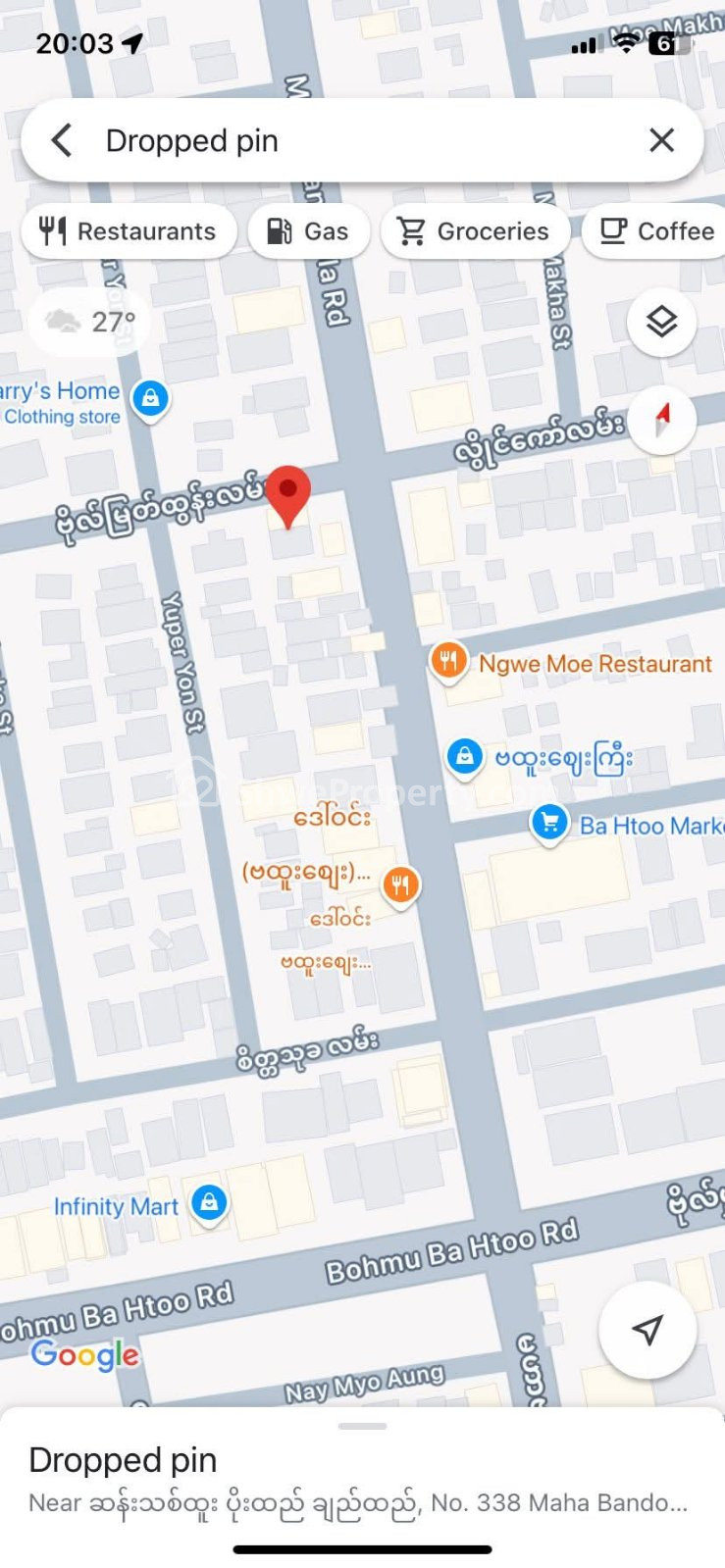 အိမ်ခြံမြေ အမည် : ဘထူးအိမ်ယာ ဗထူးမိန်းလမ်းကြီးရဲ့ အနီး ၄၇ ရပ်ကွက် ဗိုလ်မြတ်ထွန်းလမ်း ဂုတ်အကွက် ၄၀+၆၀