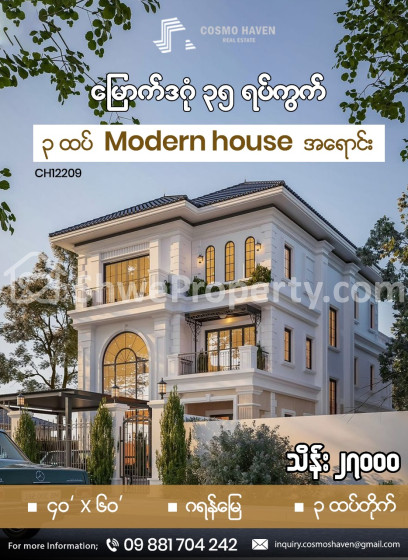 ရန်ကုန်တိုင်းဒေသကြီး ဒဂုံမြို့သစ်မြောက်ပိုင်း ရောင်းရန်ရှိသော အဆင့်မြင့်လုံးချင်းအိမ်