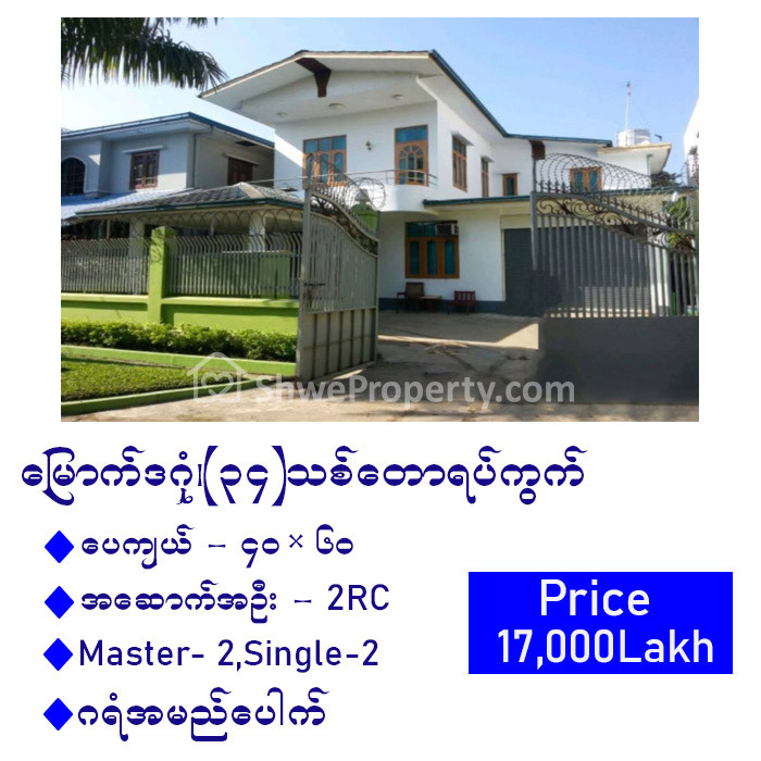 အိပ်ခန်း ၄ ခန်း ရေချိုးခန်း ၃ ခန်း ပါ ရန်ကုန်တိုင်းဒေသကြီး ဒဂုံမြို့သစ်မြောက်ပိုင်း မြို့နယ်ရှိ ရောင်းရန်ရှိသော လုံးချင်းအိမ်