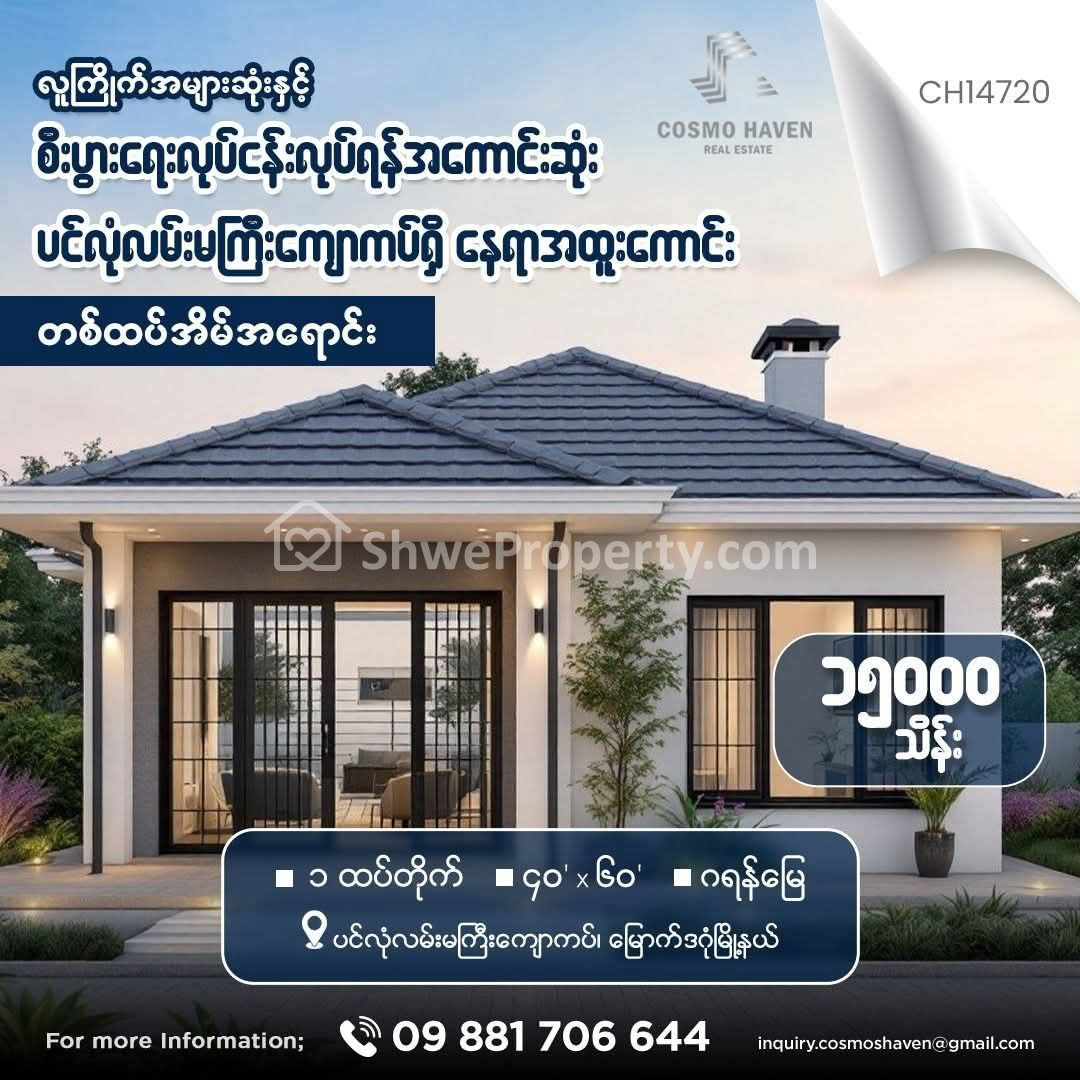 အိမ်ခြံမြေ အမည် : ပင်လုံလမ်းမကြီးကျောကပ်ရှိ နေရာအထူးကောင်း တစ်ထပ်အိမ်အရောင်း/Landed House for Sales North Dagon Township in Yangon/09892600050,09892600060