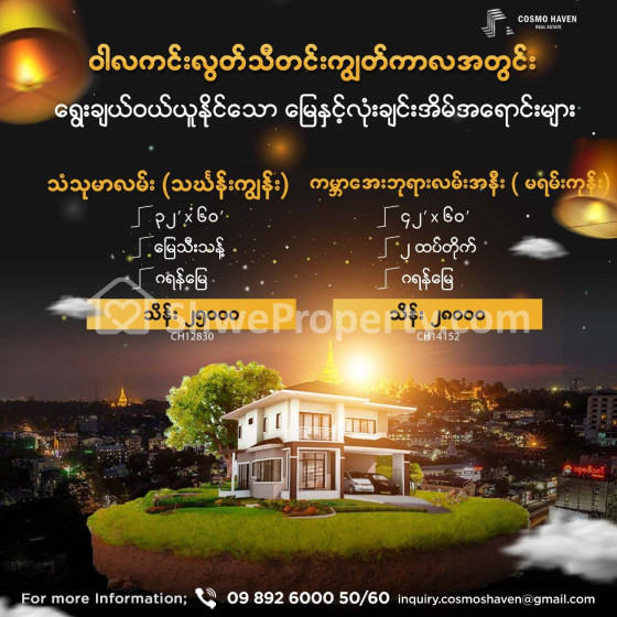 ဒါမှမဟုတ် ရင်းနှီးမြုပ်နှံမှုအတွက်ဖြစ်စေရှာဖွေနေတဲ့ လူကြီးမင်းတို့ အတွက် လုံးချင်းအိမ်နှင့်မြေကွက်အရောင်းများ ကို ကျွန်တော်တို့ Cosmo Haven Estate မှ ရွေးချယ်ဖော်ပြပေးလိုက်ပါတယ်ခင်ဗျ🎗🎗🎗