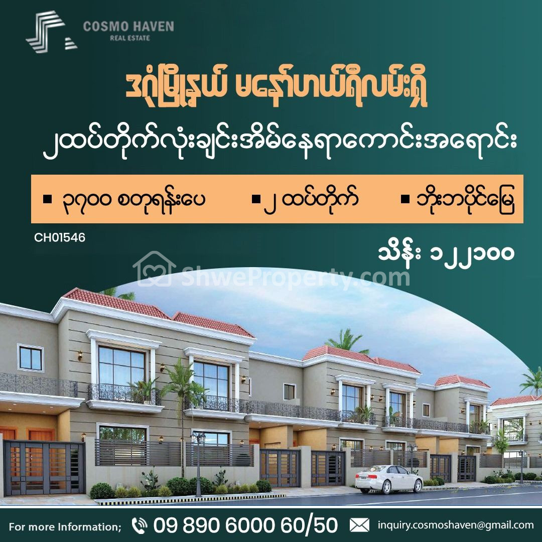 🌳🌳 ရန်ကုန်မြို့ရဲ့အဓိကမိန်းလမ်းမကြီးဖြစ်တဲ့ပြည်လမ်းမကြီးနဲ့အလုံလမ်းမကြီးအနီးမနော်ဟယ်ရီလမ်းတွင်ရှိပြီးရင်းနှီး မြှပ်နှံဖို့သာမက နေထိုင်ဖို့အတွက်ပါသင့်လျော်သောနေရာကောင်းတစ်ခုဖြစ်ပြီးသံရုံးarea တွင်တည်ရှိသောကြောင့်လုံခြုံစိတ်ချရသောပတ်၀န်းကျင်တွင်တည်ဆောက်ထားသောတန်ဖိုးနဲ့စျေးနှုန်းတစ်ထပ်တည်းကျတဲ့၂ထပ်လုံးချင်းအိမ်အ ရောင်းလေးကို စိတ်၀င်စားလို့လိုက်လံကြည့်ရှုလိုပါကကျွန်မတို့ Cosmo Haven Estate ကိုဆက်သွယ်ရွေးချယ်၀ယ်ယူနိုင်ပါပြီရှင်