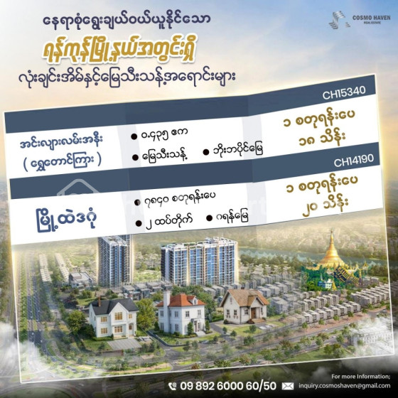 🏙️ရန်ကုန်မြို့အတွင်းရှိ လုံးချင်းအိမ်နှင့် 🏠မြေသီးသန့်များကို ကျွန်တော်တို့ Cosmo Haven Estate နှင့် အတူ 🌴နေရာစုံ လွယ်ကူစွာ ရွေးချယ်ဝယ်ယူနိုင်ပါပြီနော်🤗✨️💯💯💯
