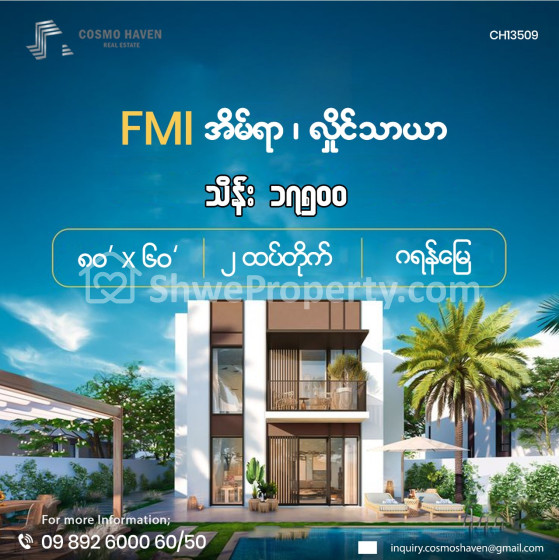 အိမ်ခြံမြေ အမည် : FMI City ထဲက ၂ ထပ်တိုက်လုံးချင်းအိမ်အရောင်း/ Landed House for Sales Hlaing Thar Yar Township in Yangon