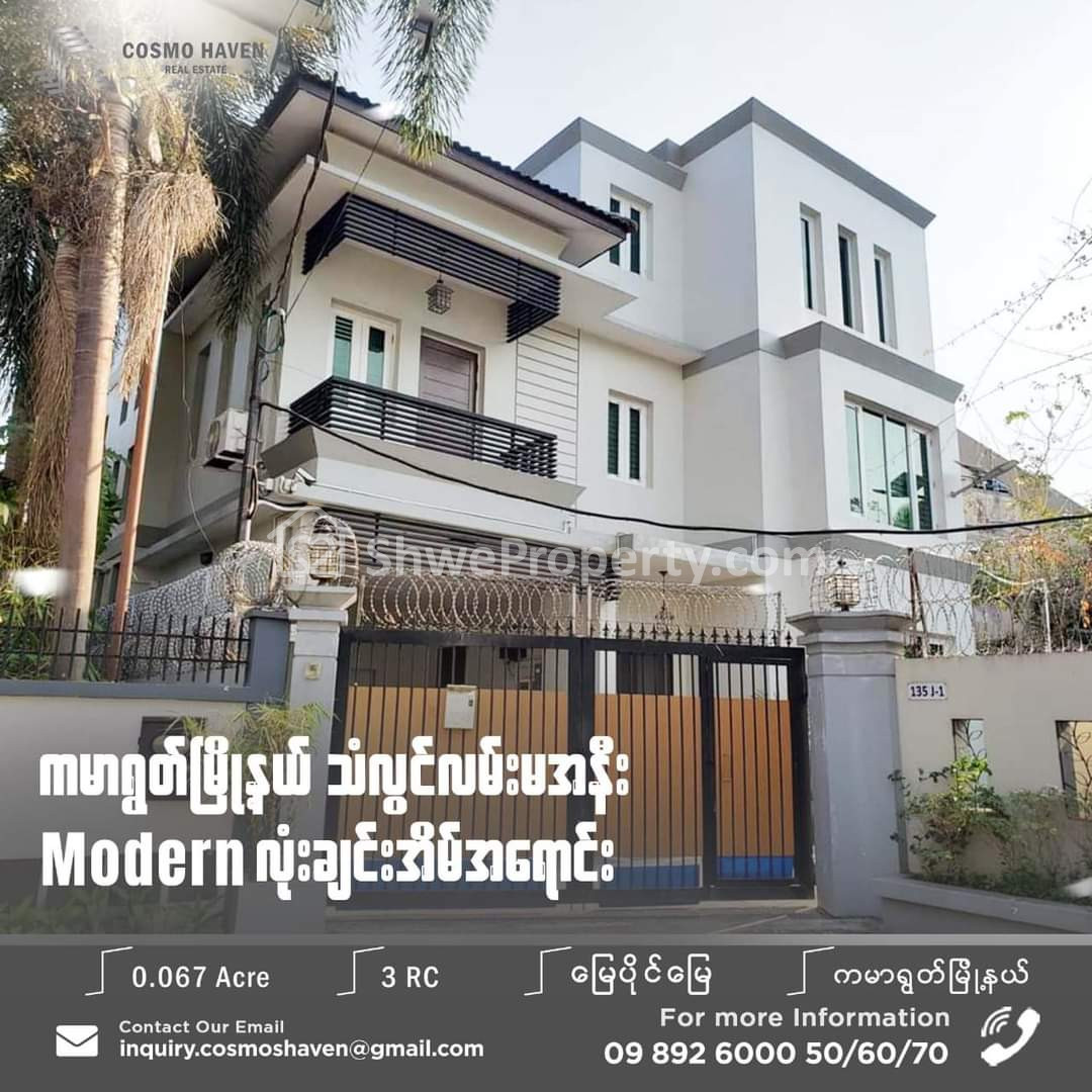 အိမ်ခြံမြေ အမည် : Landed House for Sales Kamayut Township in Yangon / ကမာရွတ်မြို့နယ်(Windermere)သံလွင်လမ်းသွယ် Modern လုံးချင်းအိမ်အရောင်း