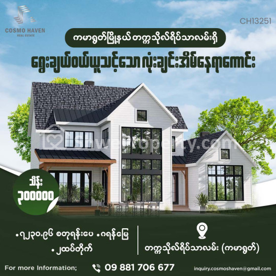 ကမာရွတ်မြို့နယ်တက္ကသိုလ်ရိပ်သာလမ်းရှိနေရာကောင်းလုံးချင်းအိမ်အရောင်း