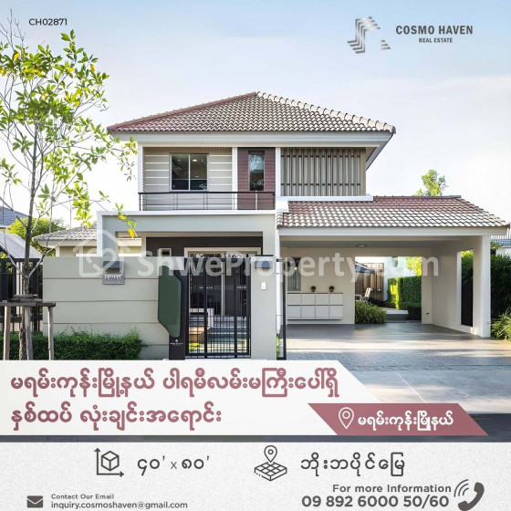 ရန်ကုန်တိုင်းဒေသကြီး မရမ်းကုန်း ရောင်းရန်ရှိသော အဆင့်မြင့်လုံးချင်းအိမ်