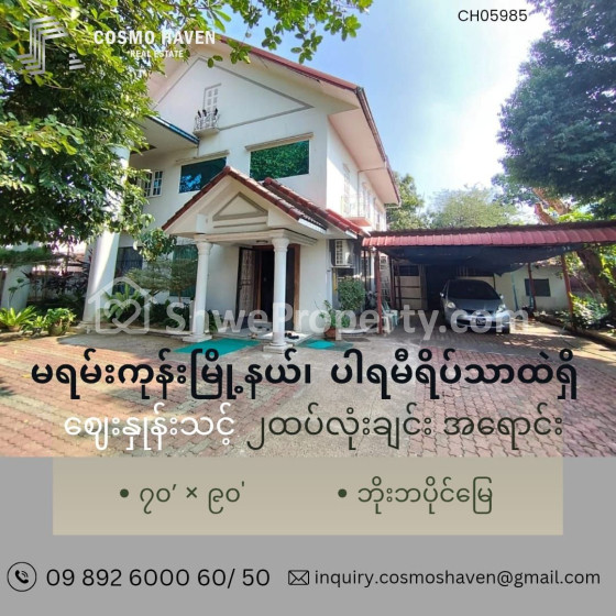 အိမ်ခြံမြေ အမည် : မရမ်းကုန်းမြို့နယ်၊ ပါရမီရိပ်သာ အတွင်းလမ်းကျယ်ထဲရှိ ၂ထပ်လုံးချင်းအရောင်း / Landed House for Sales Mayangone Township in Yangon