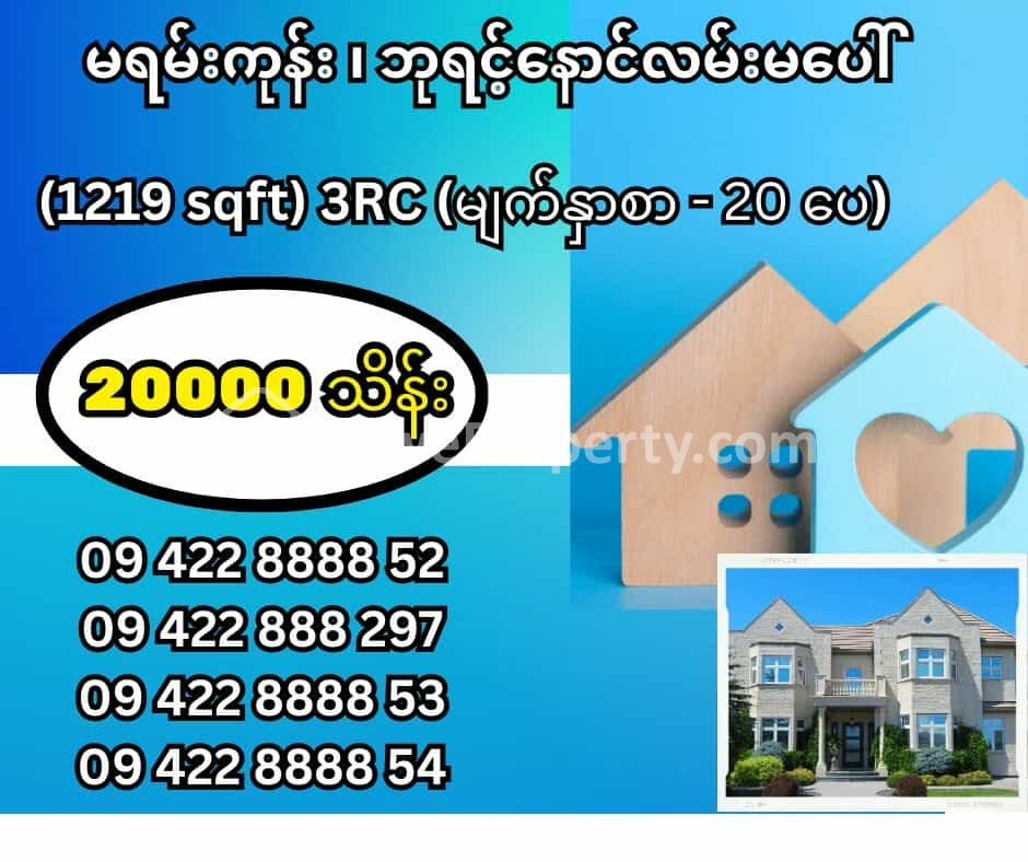 ရန်ကုန်တိုင်းဒေသကြီး မရမ်းကုန်း ရောင်းရန်ရှိသော အဆင့်မြင့်လုံးချင်းအိမ်
