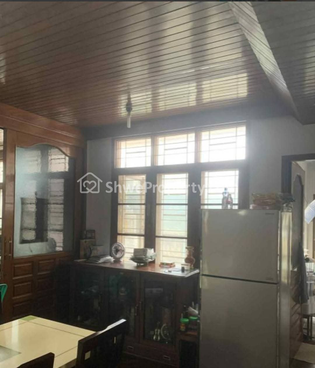 #ကားဂိုဒေါင် အကျယ်- အပေါ်ထပ် လူနေအခန်းရှိ၊ ခြံတွင်းကားအစီးရေ ၃~၄ စီးဆန့်