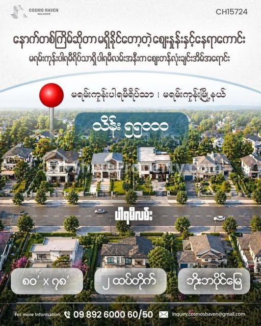 🏙️ကမ္ဘာအေးဘုရားလမ်းမကြီး နှင့် ပါရမီလမ်းမအနီးရှိ 🌴 မရမ်းကုန်းပါရမီရိပ်သာအတွင်း⚡ပိုင်ဆိုင်မှုခိုင်မာပြီး 🌴 လုံခြုံစိတ်ချရတဲ့ပတ်ဝန်းကျင်မျိုးမှာ 🏠 နေထိုင်ဖို့ ရှာဖွေနေတယ်ဆိုရင်တော့ ကျွန်တော်တို့ Cosmo Haven Estate မှာ ရှိနေပြီဖြစ်လို့ အမြန်ဆုံး လှမ်းလာခဲ့ဖို့ ဖိတ်ခေါ်လိုက်ရပါတယ်ခင်ဗျာ 🤗