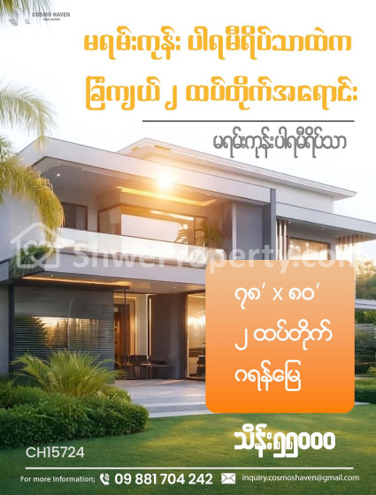 ရန်ကုန်တိုင်းဒေသကြီး မရမ်းကုန်း ရောင်းရန်ရှိသော အဆင့်မြင့်လုံးချင်းအိမ်