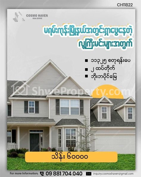 အိမ်ခြံမြေ အမည် : မရမ်းကုန်းမြို့နယ်အတွင်းရှာဖွေနေတဲ့လူကြီးမင်းများအတွက် လုံးချင်းအိမ်နေရာကောင်းအရောင်း/Landed House for Sales Mayangone Township in Yangon/09892600050,09892600060