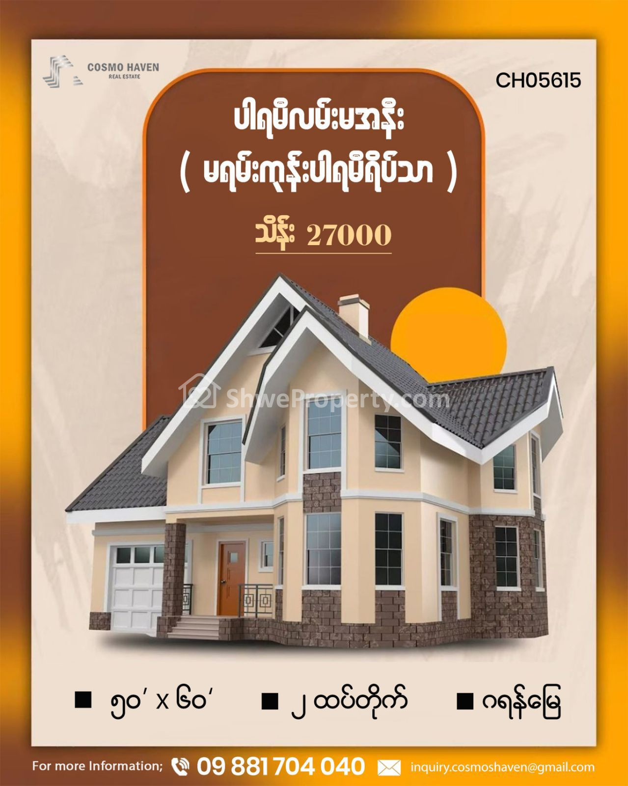 အိမ်ခြံမြေ အမည် : မရမ်းကုန်းမြို့နယ်ပါရမီရိပ်သာအတွင်းရှိ ၂ ထပ်တိုက်လုံးချင်းအိမ်အရောင်း/Landed House for Sales Mayangone Township in Yangon/09892600050,09892600060